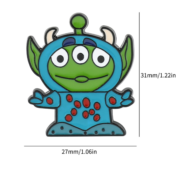 Prepárate para una invasión de ternura con nuestra divertidísima colección de pines metálicos inspirados en los marcianitos de Toy Story disfrazados de personajes icónicos de Disney 🚀🌟. Estos adorables alienígenas llegan vestidos como tus favoritos para conquistar tu corazón con estilo y humor intergaláctico 💫👗🦁.